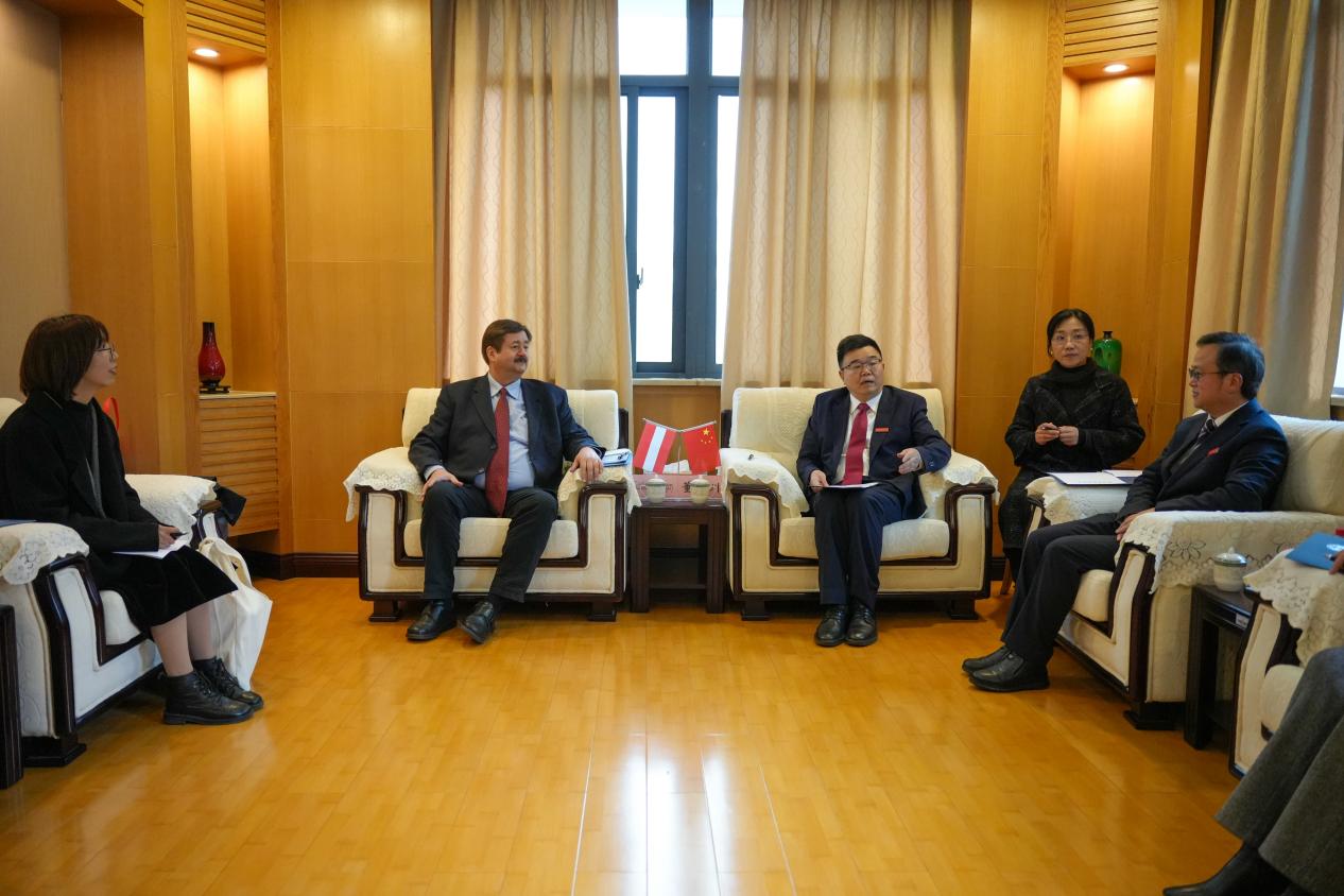 2月29日下午,奥地利驻成都总领事雷君山一行来访我校。校长董洪川、副校长祝朝伟在立德楼A401会见来宾,国际合作与交流处、德语学院相关负责人参加接待。