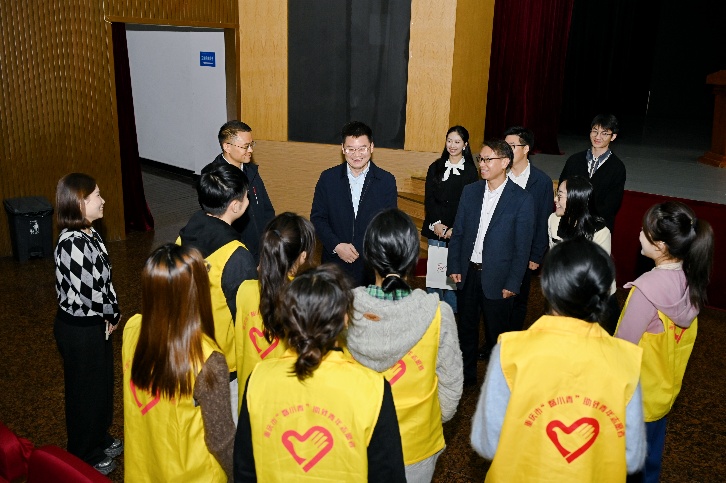 随后,龙东阁一行在副校长卢波陪同下前往大礼堂观摩我校“‘瞳’行无碍”口述电影“馨小青”志愿服务队日常排练,现场了解服务队运作模式,并就进一步提升我校志愿服务工作提出指导性建议。