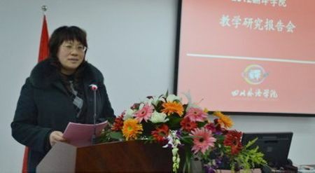 年12月28日下午,2012年翻译学院教学研究报告会在学校西区教学楼a幢202同声传译室举行,翻译学院秦勤、罗玉婧、马理惠、唐昉等四位教师先后进行教学研究陈述。副校长董洪川教授,翻译学科负责人廖七一教授,教务处长廖巧云教授,研究生部兼学科办主任王仁强教授,外国语言研究中心主任、学校mti笔译方向负责人杨全红教授应邀出席报告会并做精彩点评。报告会由翻译学院院长祝朝伟教授主持,翻译学院全体专职教师及教学管理干部参加了会议。