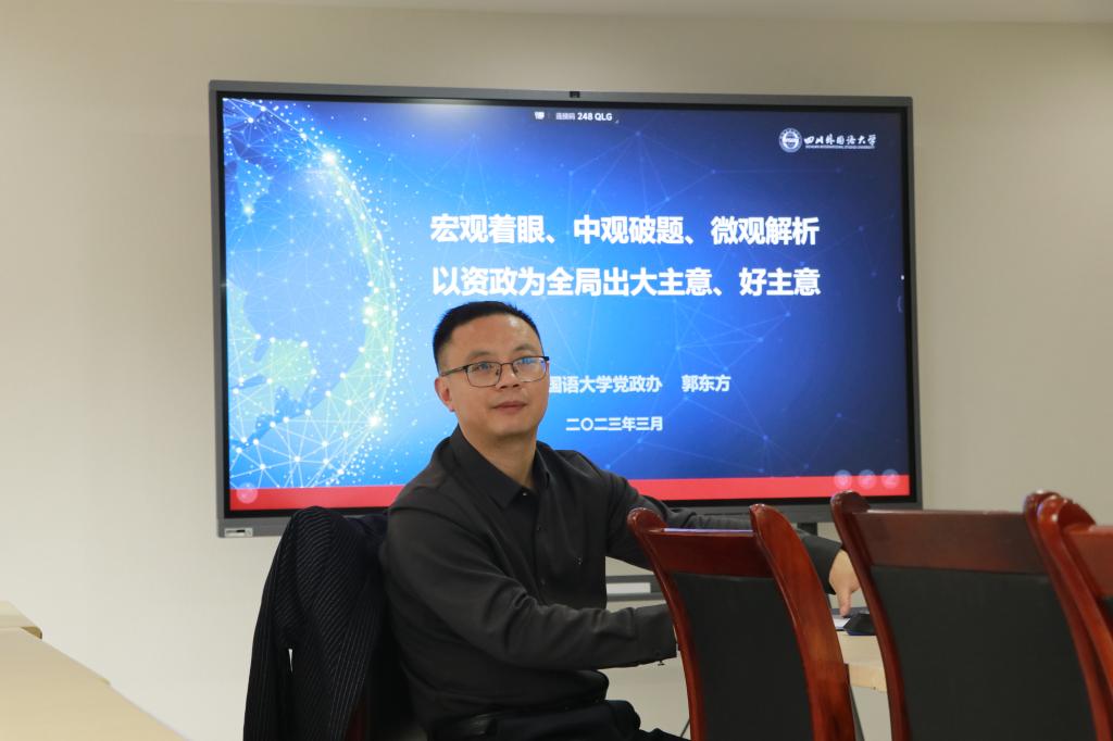 3月31日下午,“新文科背景下外国语大学‘资政报告’”继续开讲。第五讲由kaiyun中国网页版登录党政办副主任郭东方老师主讲,来自我校马克思主义学院、西方语言文化学院、国际关系学院等多个学院教师积极参加。