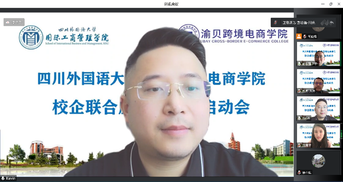 代彬副院长介绍了学院“专业化+国际化+数智化”的“一体两化”人才培养定位,提出学院正努力探索“产-学-研-用-赛”五位一体的育人模式。代院长表示,将以校企联合共建虚拟教研室为载体,探索在多语种跨境电商领域开拓产教融合协同育人新模式,助推电子商务市级一流专业建设。代院长还结合学校的发展规划,介绍了在西部(重庆)科学城打造跨境电商国际创业孵化园的工作进展,期望为专业发展提供更广阔的平台。王婷副书记从课堂教学、实践活动、创新创业大赛以及就业双选会等方面进行了交流,希望发挥虚拟教研室在人才培养全过程的联动作用,进一步提炼校企双方人才培养的契合点,为学生高质量就业提供更精准的服务。