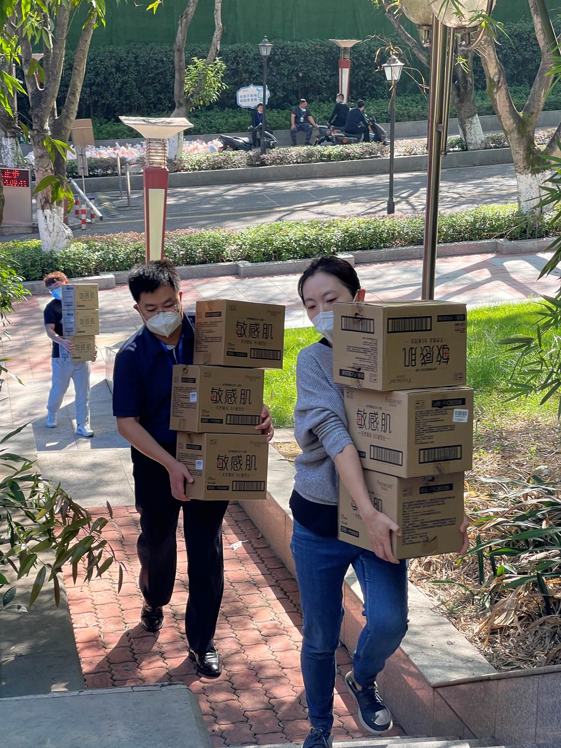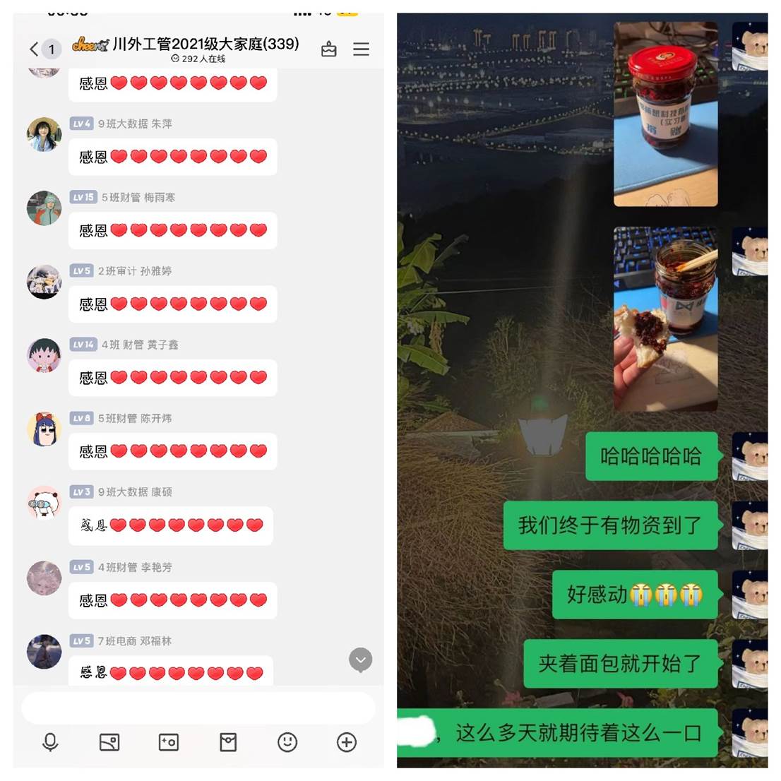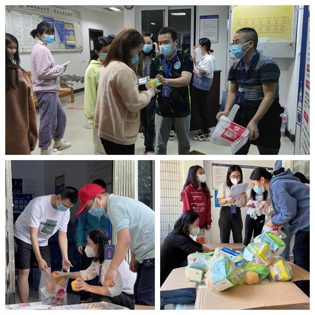 10月17日至20日,成都萌想科技有限公司(实习僧)、江裕教育科技有限公司、重庆西朗进出口贸易有限公司、诺维奇电子商务有限公司、米多奇国际物流有限公司以及重庆西永跨境电商产业园等单位暖心捐赠抗疫资金和一批急需紧缺抗疫物资,包括纸巾、女性用品、水果、牛奶、风味油辣椒、燕麦片、芝麻糊、豆奶粉等,解决了我校学生的燃眉之急。收到捐赠物资后,国际工商管理学院立即研究分发方案,安排教师志愿者争分夺秒进行分装、打包、转运,奔波于各个宿舍楼栋之间,第一时间将物资分发到同学们手中,确保企业的爱心之举落到实处。学生收到捐赠物资后都十分欣喜,纷纷对爱心企业的善举表达了诚挚感谢。