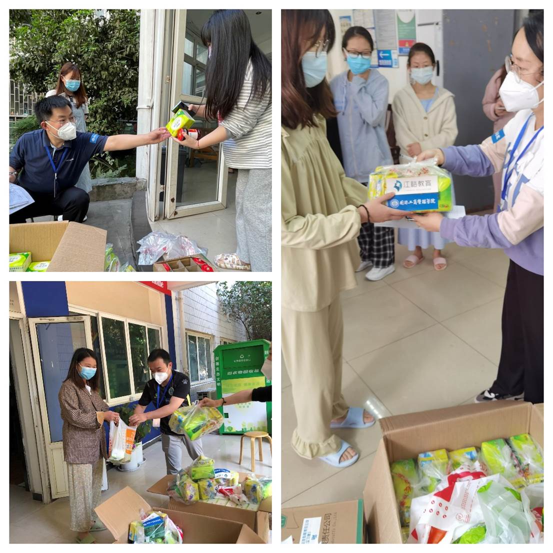 老师们第一时间把企业爱心捐赠发放到同学们手中