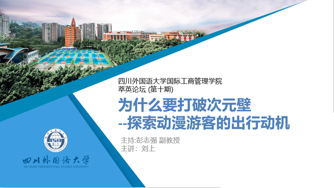 学院于12月7日以在线方式举办了第十期“萃英学术论坛”活动。本期论坛主讲嘉宾为我院旅游管理专业的刘上博士,主题为“为什么要打破次元壁——探索动漫游客的出行动机”。共计30余位老师参加了本期论坛,活动由彭志强副教授主持。