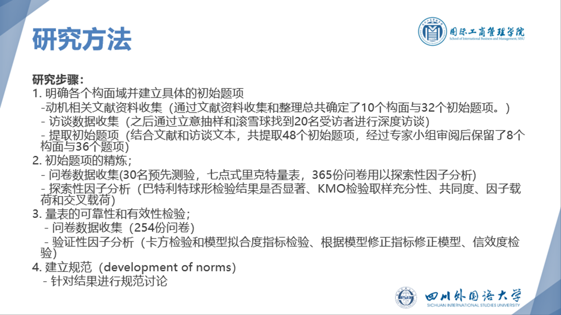 首先,主持人彭志强代表学院欢迎与会老师和同学,并介绍了本期论坛嘉宾刘上老师及分享主题。之后,刘老师分别就“动漫和二次元文化的影响”“其受众的消费行为特征”“动漫文化所引发的旅游活动”以及“参与其中的游客所展现出的独特行为”等方面进行了介绍,并引入了这次分享的主要内容——动漫游客的出行动机量表开发与验证。在具体分享其研究内容时,刘老师首先介绍了当前学界对于动漫旅游和游客的研究现状,并详细介绍了如何从普适的动机理论研究、文化旅游研究和电影电视旅游研究中找到研究空白并确定具体研究问题。之后,刘老师介绍了其研究中所参考的各个动机理论,并从如何确定初始量表下的各个概念维度和题项、如何进行题项的精炼并对生成量表进行信效度检验以及对最终量表建立规范进行了详细阐述。最后,刘老师对研究结果进行了总结,根据他的研究结果,动漫游客的出行动机主要由“动漫原真性追求”“动漫文化探索”“新奇性”“逃离和放松”以及“社交”五个维度的因素构成,这些动机因素一方面展现了动漫旅游中的独特文化特色,另一方面也有助于加深对当代流行文化消费的理解。
