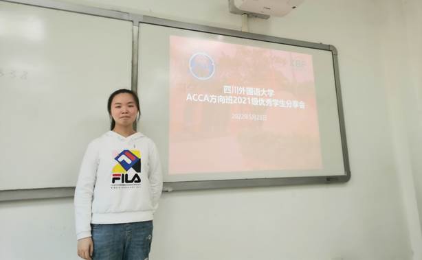 5月23日上午,国际工商管理学院财务管理专业ACCA(国际注册会计师方向)卓越人才教改班优秀学员分享会在培英楼305教室举行。ACCA班2019级的冉孟卿同学在大三就提前全科通过了ACCA全球统考,她为2021级的学弟学妹们分享了自己的学习心得和考试经验,激励大家奋发进取,不辜负大学时光。