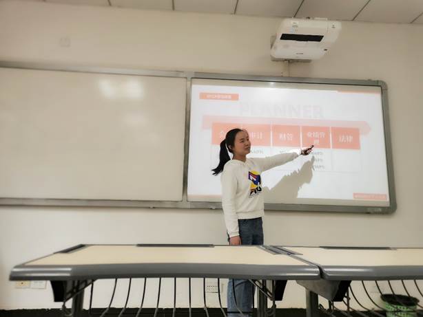 接着,冉孟卿同学为大家分享了选择ACCA方向班的初衷、ACCA科目的学习方法以及如何进行合理的学业规划。她从如何做课堂笔记、如何收集学习资源、如何备考ACCA全球统考等方面详细分享了学习方法和经验。聆听完她的分享后,同学们对于通过ACCA考试更有信心和斗志,也对自身未来发展方向有了更加明确的认识。