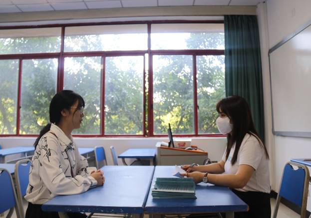 模拟面试正式开始后,应聘者按照简历的递交顺序依次进入相应的面试室。应聘者首先进行自我介绍,包括个人的学习经历、实践经历、比赛经历等。面试官通过应聘者的相关经历提出了对应问题,例如职业规划、自身优劣分析、就业方向等等。同时,面试官也特别关注应聘者的想法,让应聘者提出疑问,耐心且认真地对此进行了回答和分析。