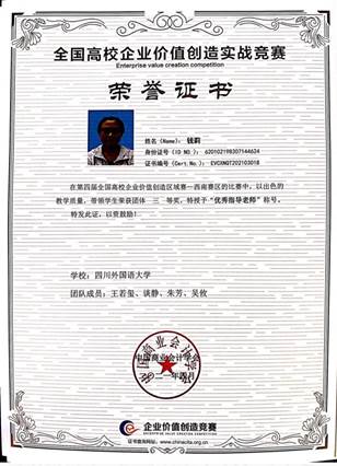 由中国高等教育学会高等财经教育分会指导,中国商业会计学会主办,中国会计学会会计教育专业委员会、上海财经大学会计学院协办的第四届全国高校企业价值创造实战竞赛区域赛于2021年4月24日圆满结束。在西南区上百支队伍中,钱莉与吕乐两位老师指导的参赛队获得西南区三等奖,获奖学生分别是:王若玺、谈静、朱芳、吴攸。学院也同时荣获了“第四届全国高校企业价值创造实战竞赛优秀组织奖”。