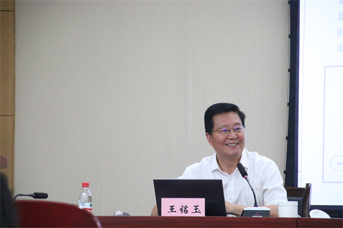 随后,王铭玉教授向在座师生介绍了现代大学书院制的概况、发展、基础,利用表格的形式从最高境界、育人目标、养成方法等制度或维度方面,带领大家区分了现代书院制和现代学院制的差异。最后,王铭玉教授提出了对书院的再思考,他指出,理想中的书院应该是讲座中心、访学中心、休假中心、课题中心、引才中心、智库中心、研发中心、指导中心功能的集合体,不仅是育人的,还应是培养学科、浸润学术的;不仅是养性的,还应是养人的。