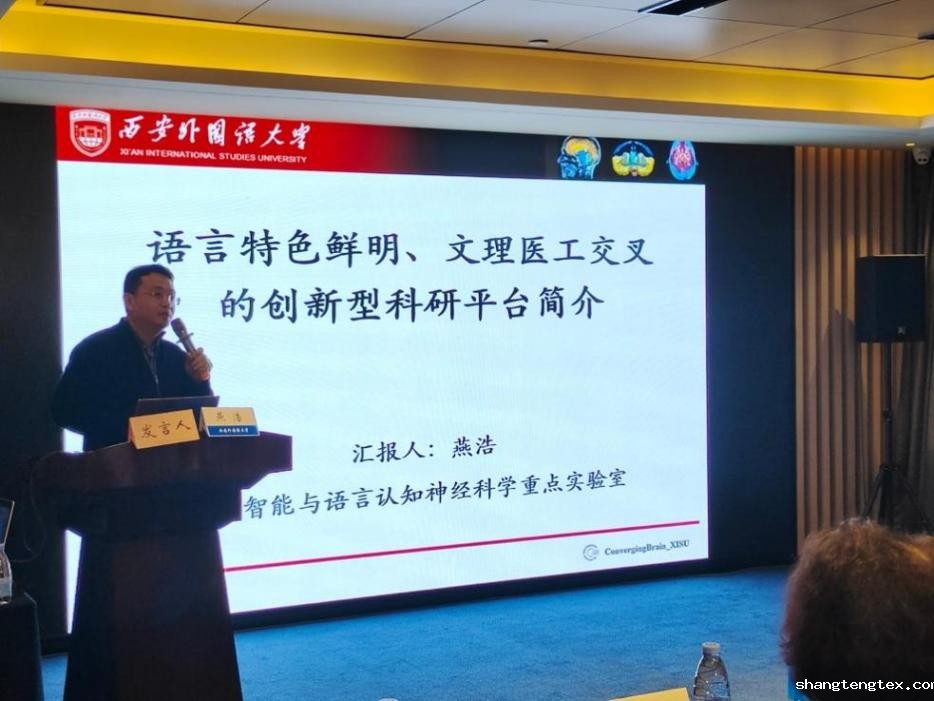 西安外国语大学人工智能与语言认知神经科学实验室主任燕浩教授作了《语言特色鲜明、文理医工交叉的创新性科研平台简介》的报告。燕教授介绍了平台的基本概况以及三个研究方向:利用计算建模进行的语言脑科学研究、多模态融合技术在语言脑工程中的应用、基于生物标志物的语言脑健康提升研究。燕教授还深入解析了言语障碍的神经机制研究和治疗方法,展示了脑电信号分析和血氧神经动力学特征在言语障碍治疗中的应用前景。