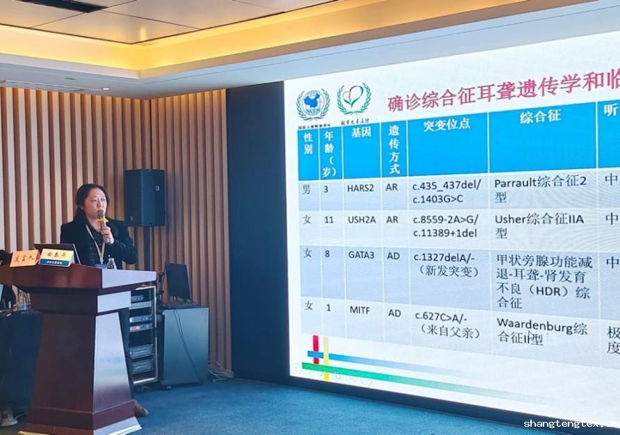 首都医科大学附属北京儿童医院保健中心副主任医师曲春燕研究员作了题为《全外显子检测发现罕见综合征性耳聋》的报告。曲主任介绍了耳聋的发生率、病因,特别强调了耳聋基因GJB2和SLC26A4,深入探讨了Waardenburg综合症及其基因突变,以及全外显子组测序在确诊非综合征性和综合征性耳聋中的应用。曲主任还特别分享了Parrault综合征2型、Usher综合征IIA、HDR综合征等综合征性耳聋的遗传学和临床特征。